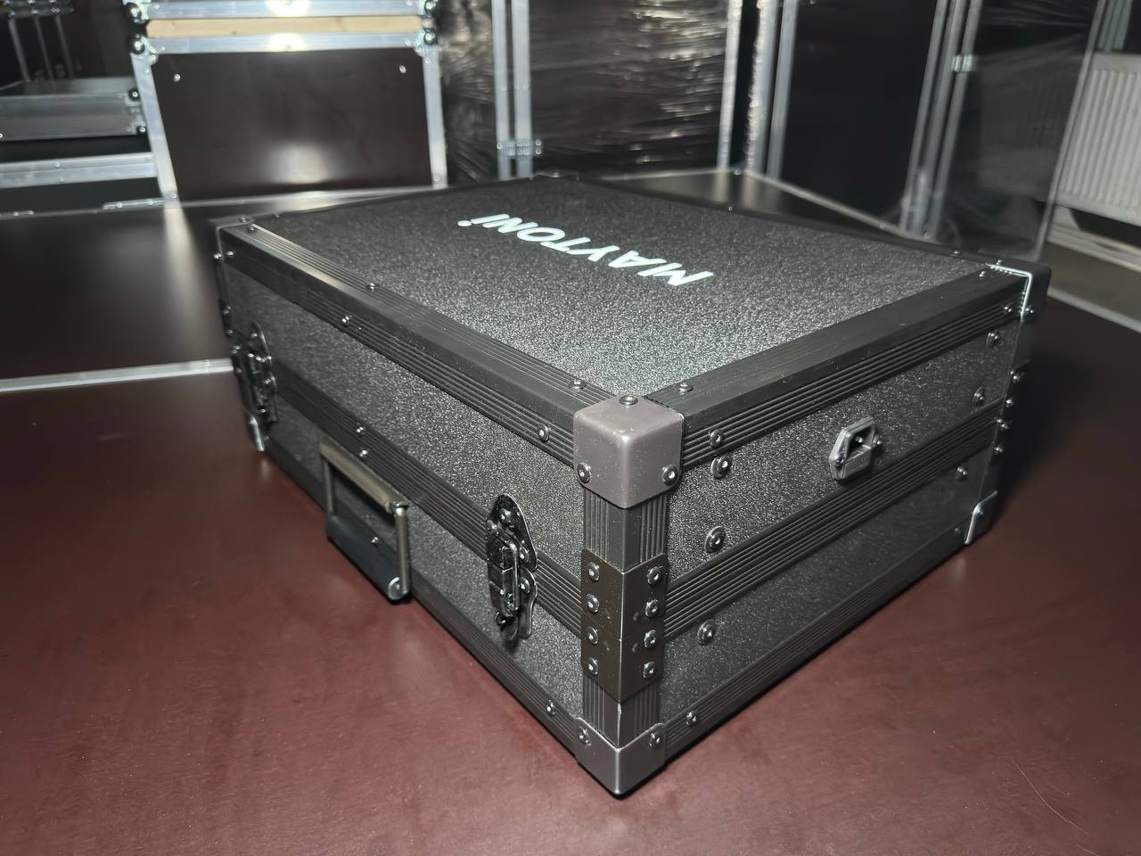 Фурнитура: - Алюминиевый профиль 4 мм, - Пружинная ручка оцинкованная - 2 шт. - Замок-захват большой с накидной скобой - 2 шт. - Петля с ограничителем раскрытия средняя хромированная - 3 шт. - Угловые элементы (квадраты) - 8 шт. - Угловая скоба 25 x 37 - 4 шт. - Колесо врезное, угловое D=48мм - 2 шт. Ложемент:Демпфирующий материал по форме образцов, ложемент может быть извлечен из кейса при помощи мягких текстильных ручек